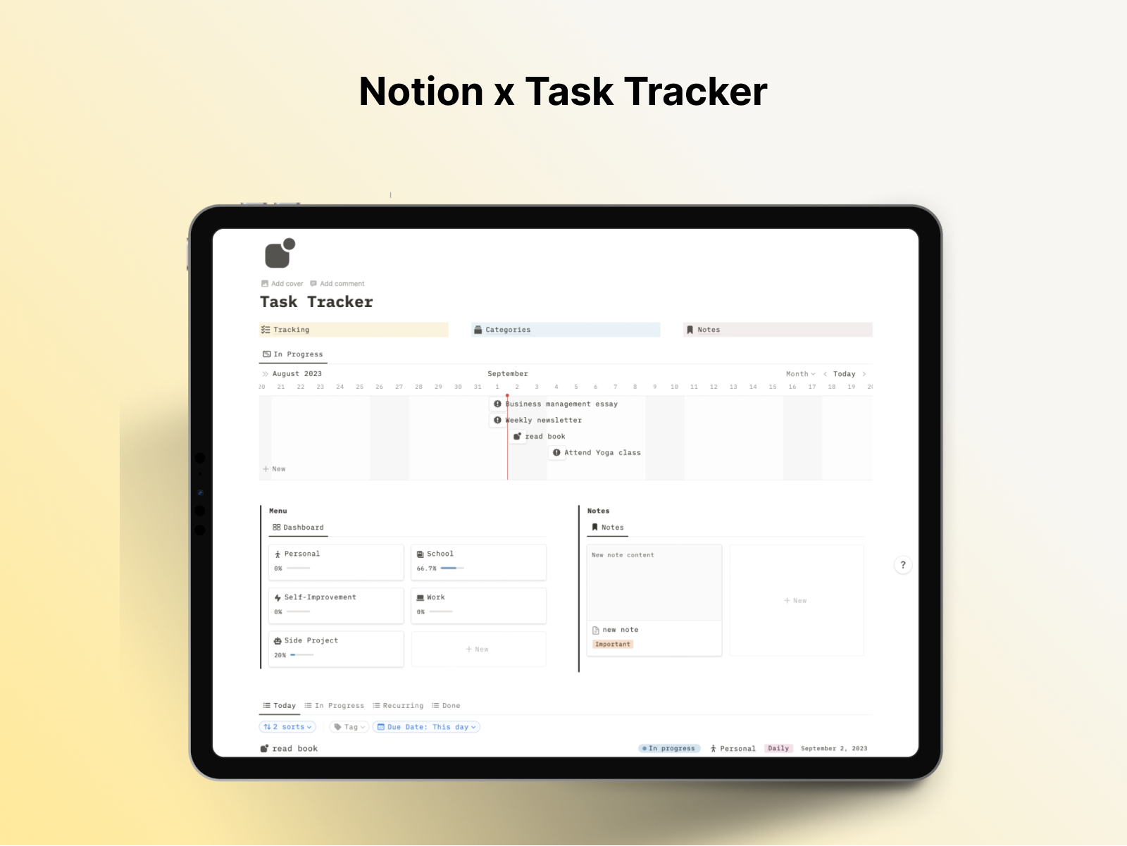 "Task Tracker Notion Template" Elevate your productivity effortlessly with our 'Task Tracker' Notion template. Designed for students, professionals, and anyone aiming for personal growth, this template simplifies daily task tracking, manages recurring responsibilities, and offers status-based categorization. Stay organized, stay focused – experience the difference with this powerful tool. For any questions or inquiries, feel free to reach out to me at [email protected]. I'm here to support you every step of the way. Let's make this week your most productive one yet! ❤️🔥"