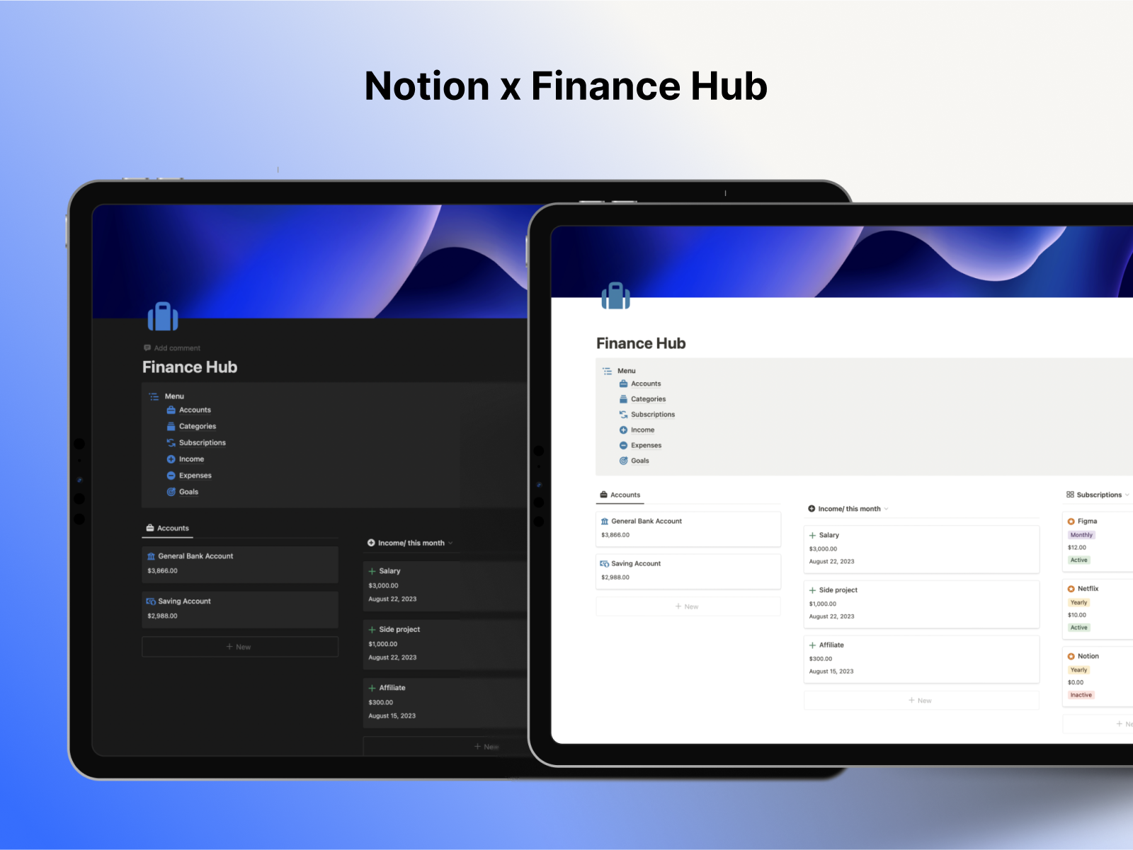 This versatile template is designed to help you control your accounts, the status of monthly payments, memberships, manage all of your income and expenses, and see the complete income-expenditure balance in one place. Whether you are a student or a professional, this template provides a framework to save time and control all your financial activities. Use two modes that you want, light or dark. For any questions or inquiries, feel free to reach out to me at [email protected]. I'm here to support you every step of the way. Let's make this week your most productive one yet! ❤️🔥"