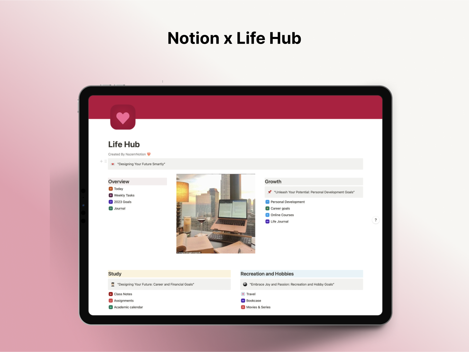 Life Hub is a comprehensive Notion template that serves as a central hub for all aspects of your life. It provides a structured framework to support your personal growth, recreation, and study pursuits. With sections dedicated to tracking daily and weekly tasks, setting yearly goals, maintaining a journal, and more, Life Hub helps you stay organized and focused on your aspirations. Whether you're looking to develop new skills, engage in recreational activities, or enhance your learning journey, this template offers a versatile and intuitive platform to manage and track your progress effectively. Embrace Life Hub as your digital companion to create a fulfilling and balanced life. Send your question at [email protected] will be more than happy to answer. ❤️🔥 I'm here to support you every step of the way. Let's make this week your most productive one yet! ❤️🔥"