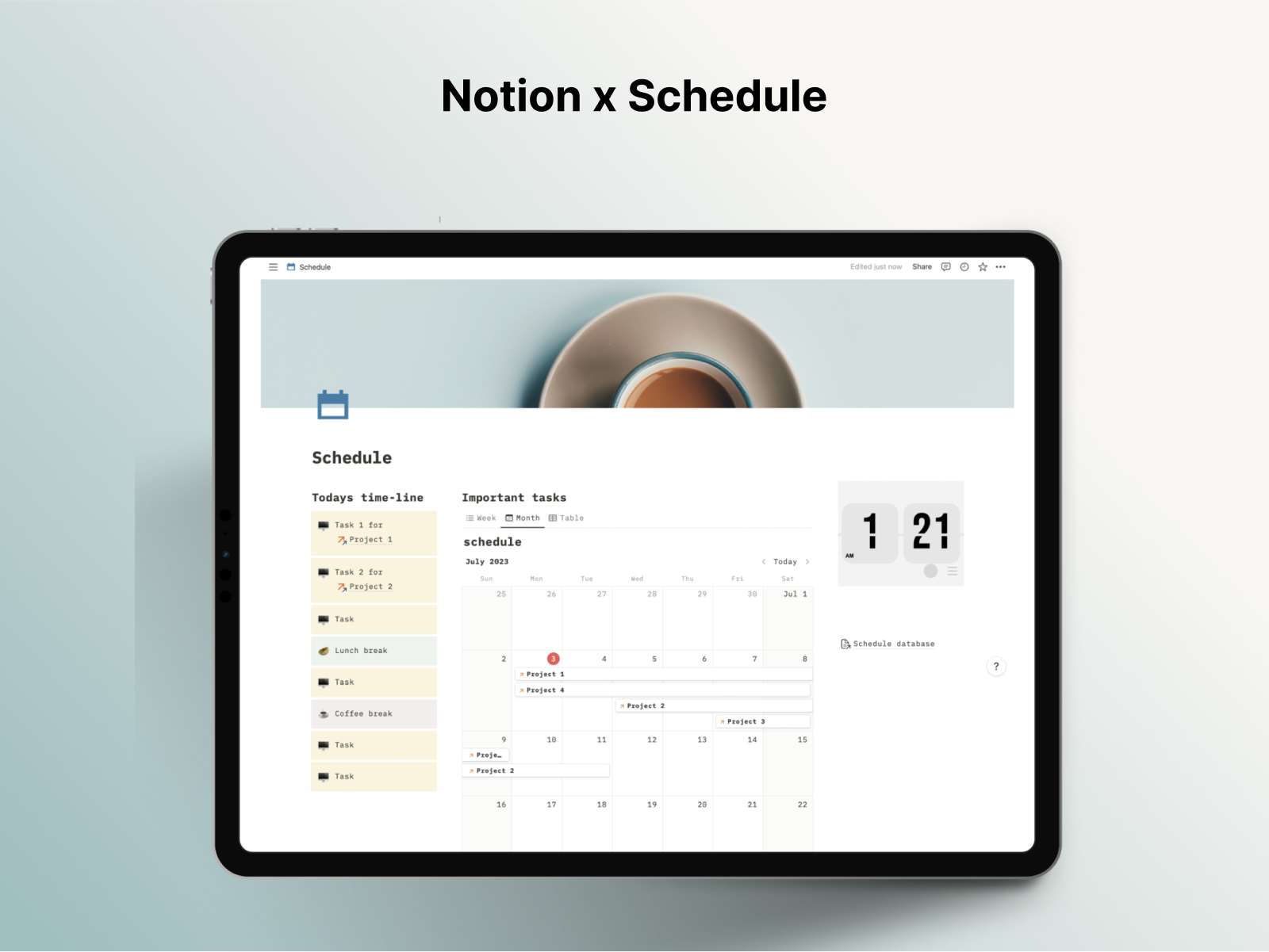 Take control of your time and stay organized with the 'Notion Schedule' template. Designed to streamline your daily, weekly, and monthly planning, this template provides a comprehensive view of your tasks, projects, and appointments. From a detailed daily timeline to a monthly calendar and task timelines, this template empowers you to manage your schedule with ease. With the added flexibility of a table view, you can customize and adapt the template to fit your unique workflow. Maximize your productivity, stay on top of deadlines, and make the most out of every day with the 'Notion Schedule' template Send your question at [email protected] will be more than happy to answer. ❤️🔥