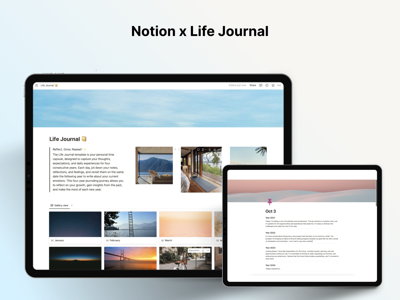 "Welcome to NazemNotion❤️🔥 Unlock the power of reflection and personal growth with the Life Journal template. Document your daily notes, expectations, and reflections for four years, revisiting each day's page to capture the essence of the present moment. Gain valuable insights from your past experiences, celebrate milestones, and set intentions for the future. Start your transformative journaling journey today! The Life Journal template is your personal time capsule, designed to capture your thoughts, expectations, and daily experiences for four consecutive years. Each day, jot down your notes, reflections, and feelings, and revisit them on the same date the following year to write about your current emotions. This four-year journaling journey allows you to reflect on your growth, gain insights from the past, and make the most of each new year. Send your question at [email protected] will be more than happy to answer. ❤️🔥